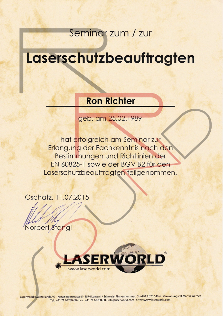 | Personalkosten Laserschutzbeauftragter pro 30min | 35,70€ inkl. MwSt. |